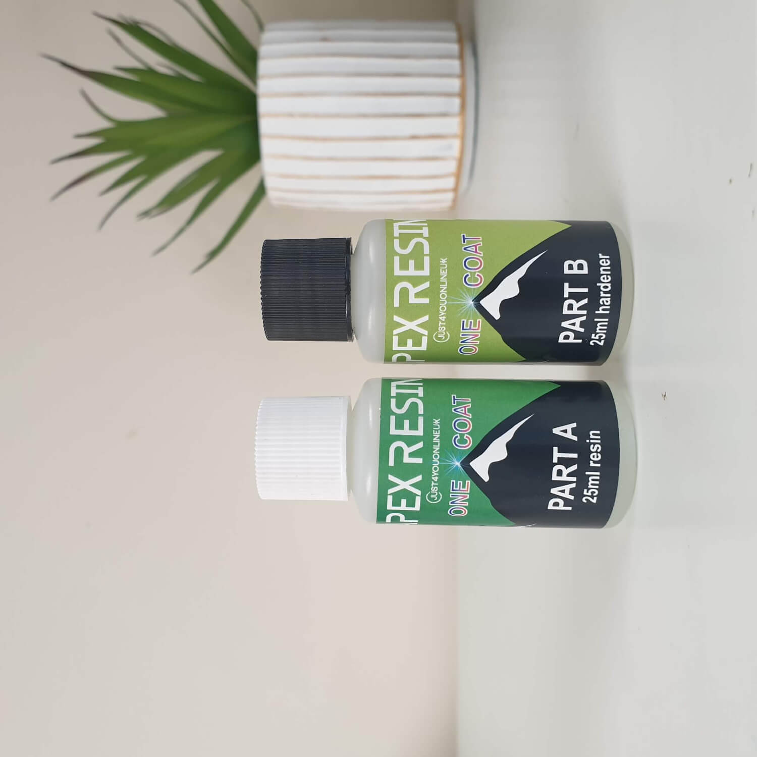 - 75ml Resin (Part A) and 75ml Hardener (Part B) = 150ml total