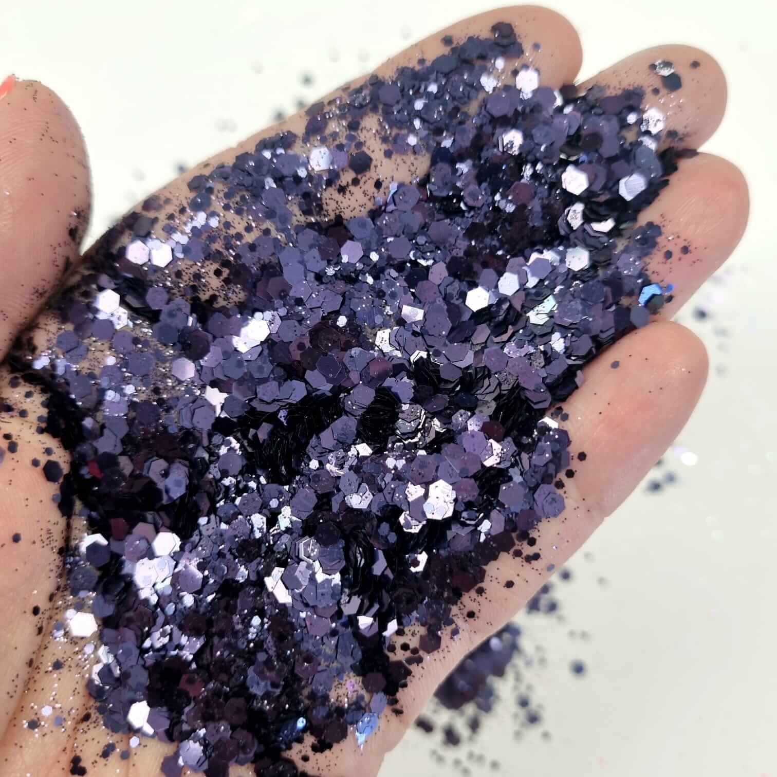 Moody, majestic, and packing a whole lot of veg-tude, Aubergine Attitude is the glitter that doesn’t just sparkle, it serves. With its bold aubergine hue and rich, velvety depth, this chunky hex glitter brings the drama of a midnight garden party and the sass of a purple power suit.