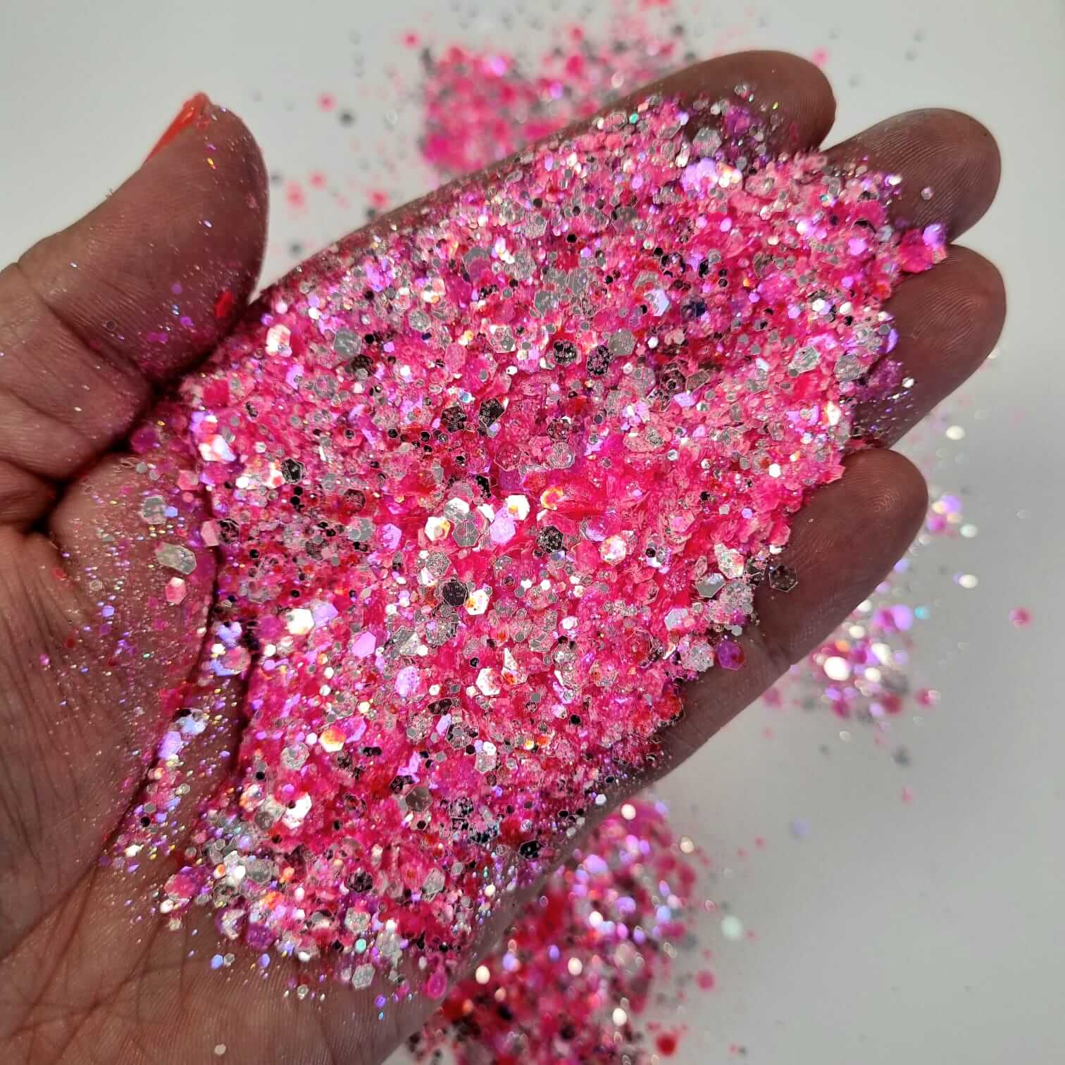 Pink Fizz features a fabulous mix of chunky and medium hex cuts, offering a multidimensional sparkle that shimmers like champagne under the sun. Whether you're crafting for a hen party, a girl’s night in, or just your own glitter therapy session, this pink is ready to party.