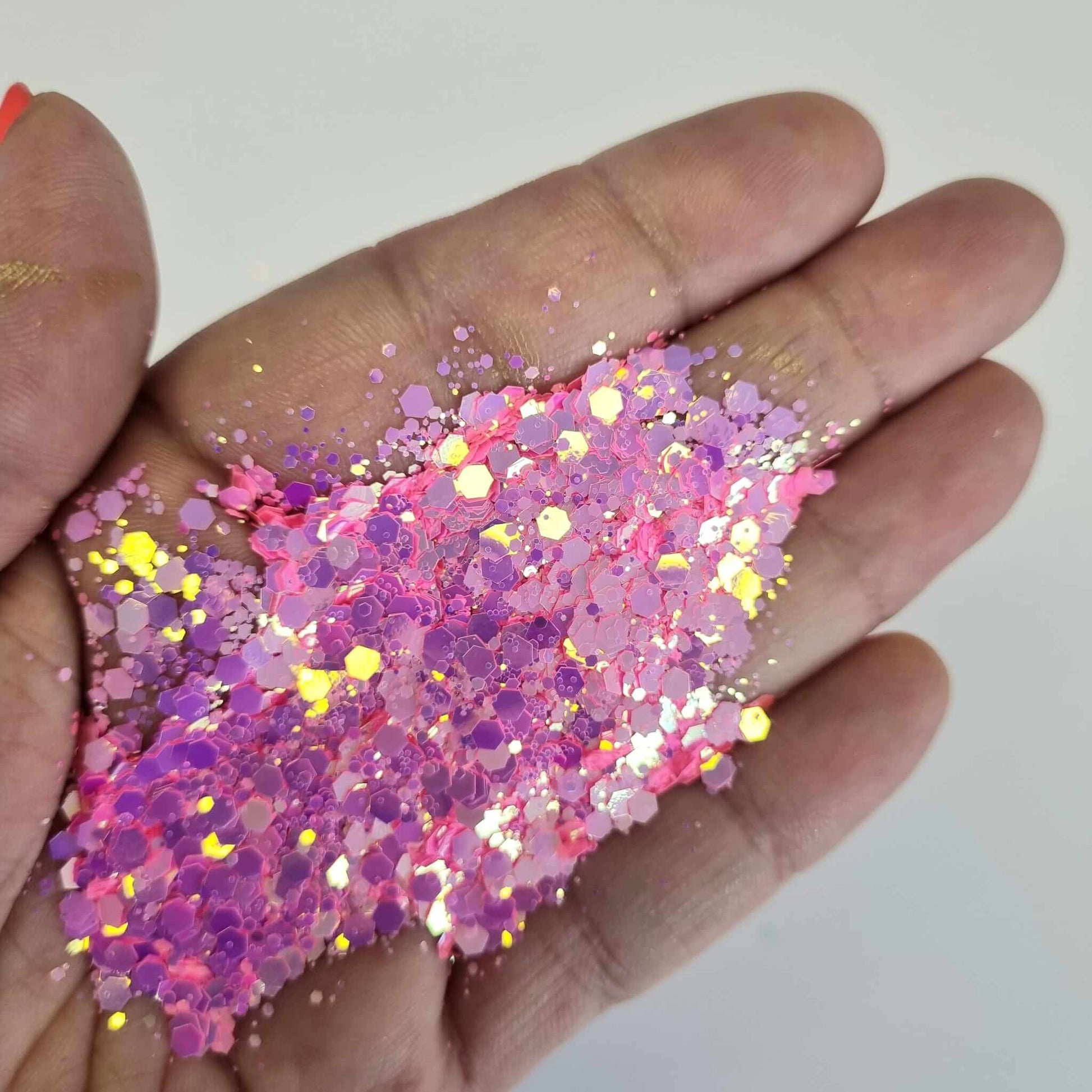 The oversized chunks create a dramatic shimmer, perfect for resin pours, statement jewellery, and standout decorations. With its vibrant colour play and eye-catching shine, Pink Wink is made for crafters who want their creations to dazzle.