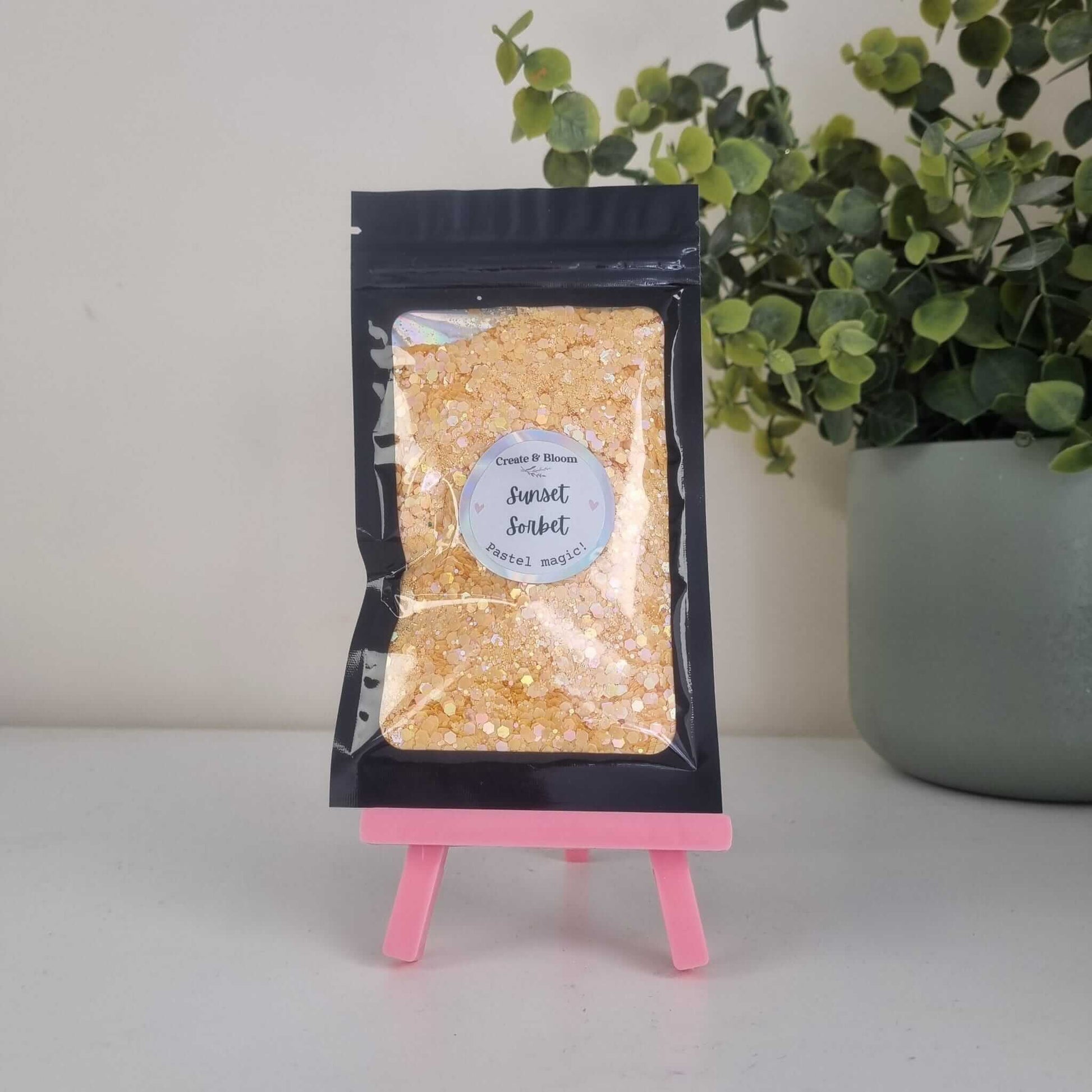 Warm juicy, and bursting with sparkle, Sunset Sorbet is a pastel orange chunky hex glitter that radiates tropical charm. With its soft citrus tones and glowing finish, this glitter is perfect for resin artists, tumbler makers, and crafters who adore a zesty splash of sunshine in their creations.