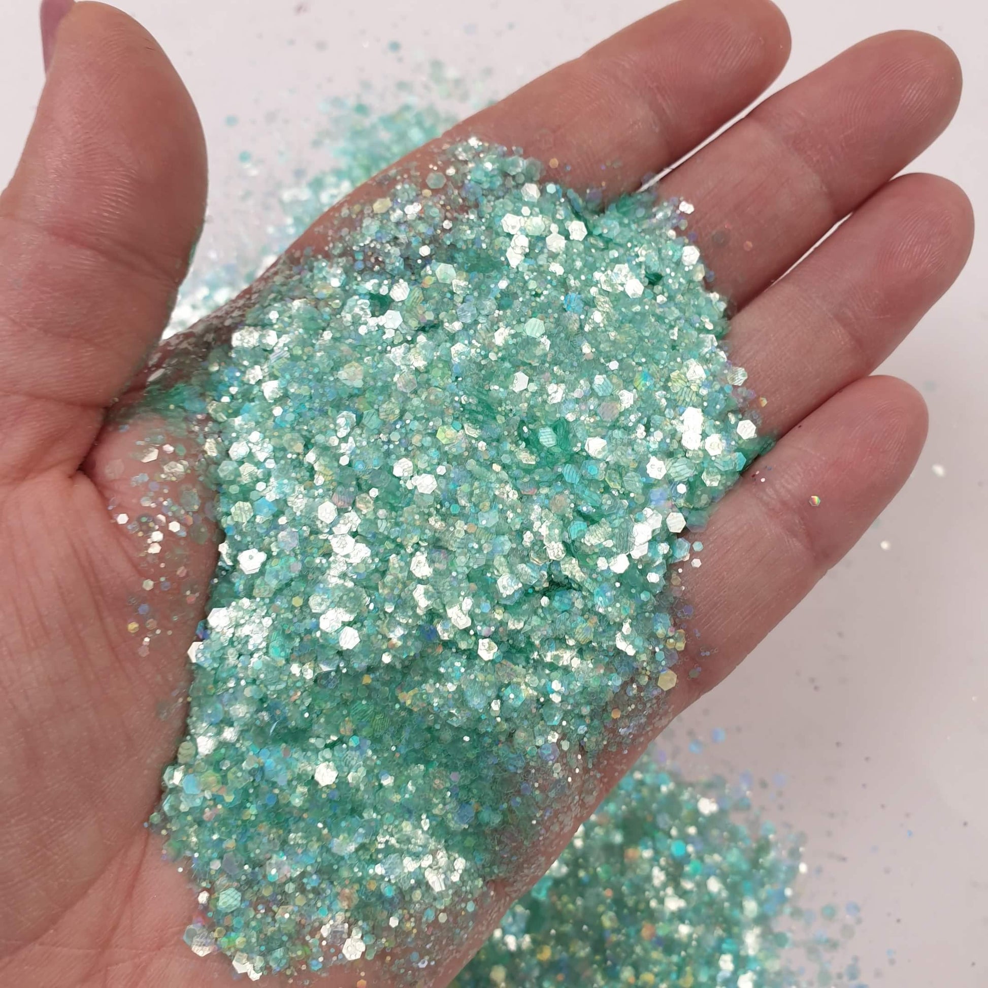 Indulge in the opulence of my pastel Green glitter, a luxurious and captivating addition to elevate your aesthetic pours.