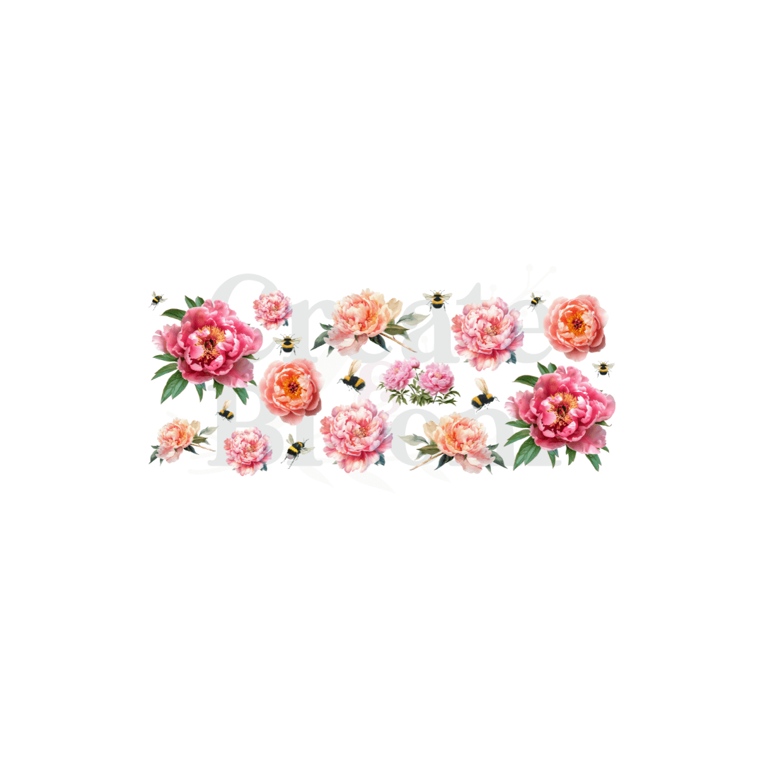 Premium UVDTF Vinyl Transfers for Resin Tumblers & Crafts: Peonies!